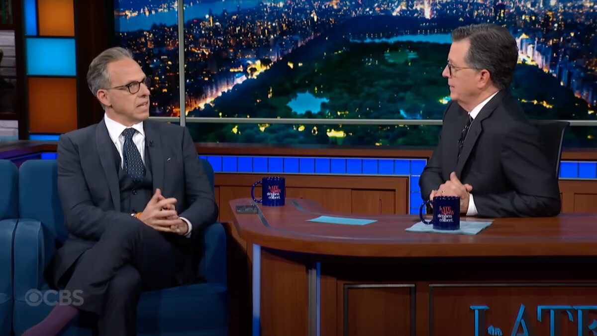 Host Stephen Colbert asked, “Has it been politicized before this that you know of?” Tapper responded with a rare admission about the seriousness of the issue: “Not to this degree. I have never seen an FCC chairman call for a direct action by local affiliates to do something to remove a speaker and speech that they don’t like. And it’s chilling. And it’s actually the exact opposite of, you know, these were supposedly going to be the free speech champions.”