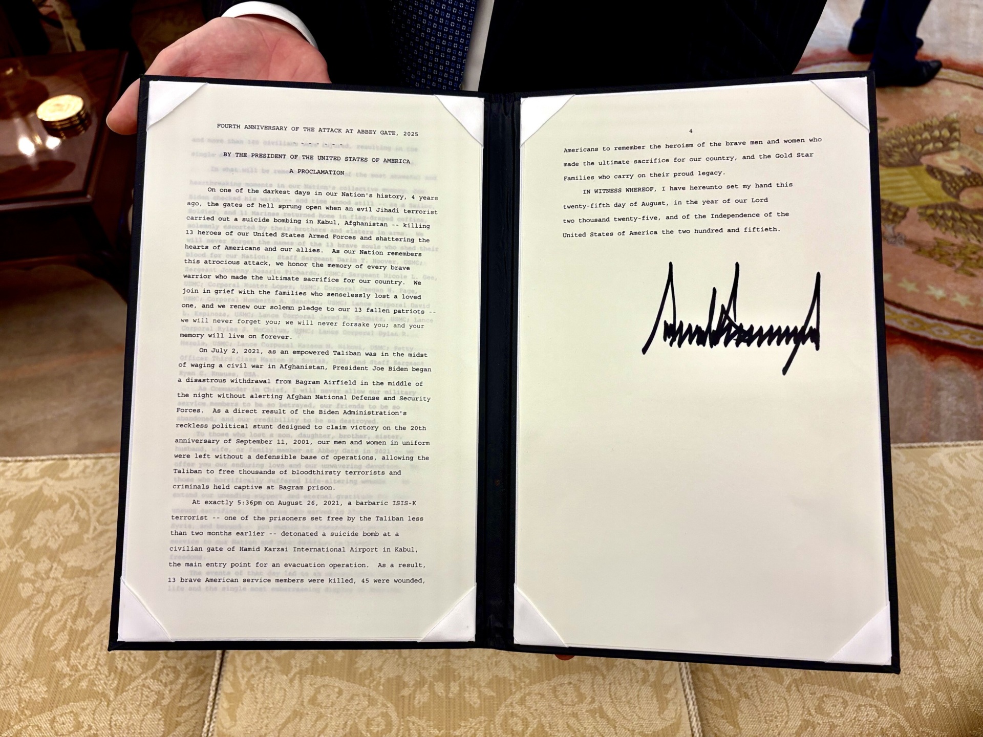 Yesterday, President Trump marked the anniversary with a solemn proclamation from the Oval Office: “On one of the darkest days in our Nation’s history, 4 years ago, the gates of hell sprung open when an evil Jihadi terrorist carried out a suicide bombing in Kabul, Afghanistan — killing 13 heroes of our United States Armed Forces and shattering the hearts of Americans and our allies. As our Nation remembers this atrocious attack, we honor the memory of every brave warrior who made the ultimate sacrifice for our country. We join in grief with the families who senselessly lost a loved one, and we renew our solemn pledge to our 13 fallen patriots — we will never forget you; we will never forsake you; and your memory will live on forever.”