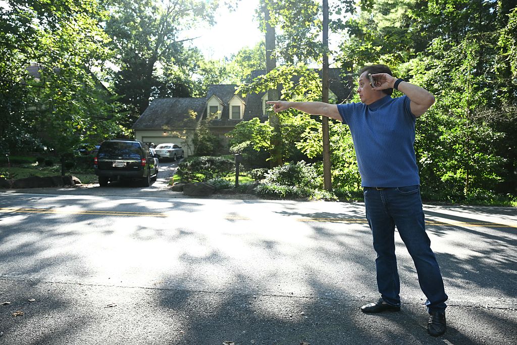 George T. Conway III, husband of former White House counselor Kellyanne Conway, speaks on the phone outside the home of John Bolton, Donald Trump’s former national security advisor, after the FBI conducted a court-authorized search of the residence on August 22, 2025, in Bethesda, Maryland. (SAUL LOEB/AFP via Getty Images)